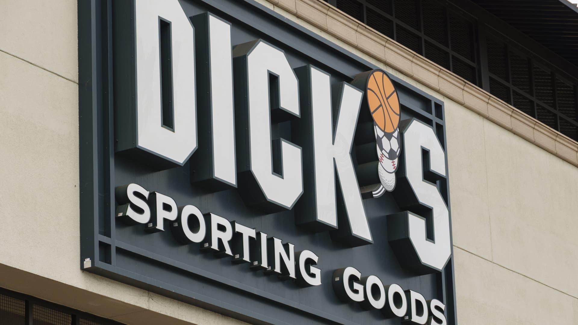 A logo is displayed outside a Dick’s Sporting Goods store on October 10, 2025 in San Diego, California.