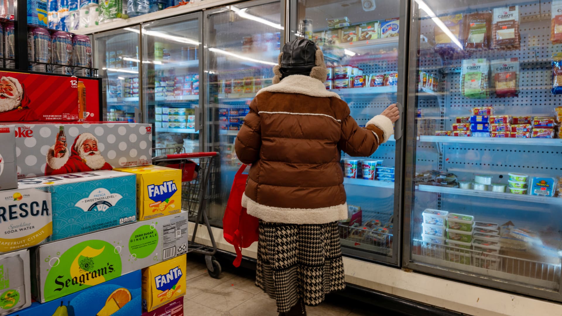 People shop at a grocery store in Brooklyn, New York City, December 12, 2025.