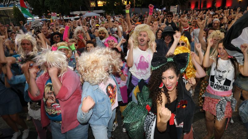 So despite concerns about the police response, protesters danced in Brisbane’s King George Square on Friday, raising their arms, waving fluorescent sweatbands and rocking colored tights as the music of Two Strong Hearts filled the air.