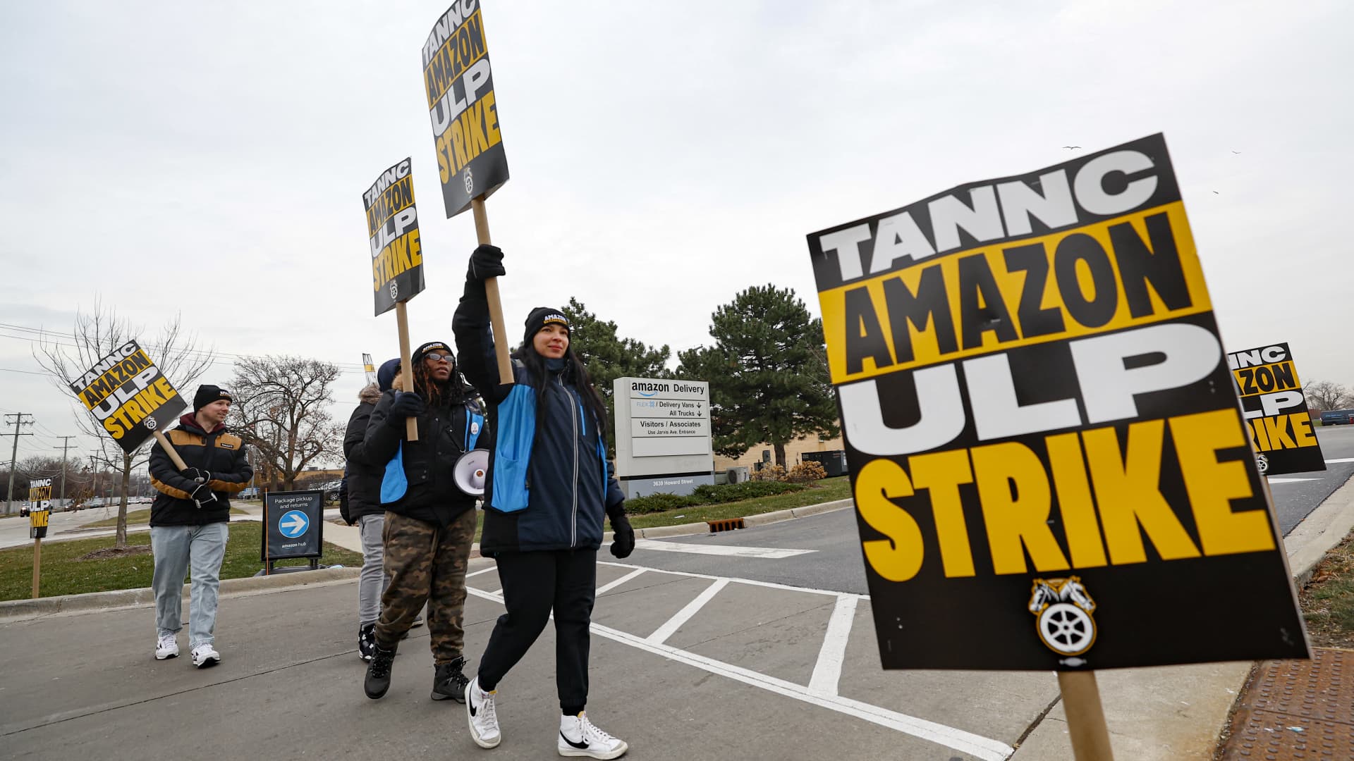 Amazon employees at seven U.S. delivery hubs walked off the job in December 2024 in a strike organized by the Teamsters. The union says it represents about 10,000 Amazon workers, a claim the company denies.