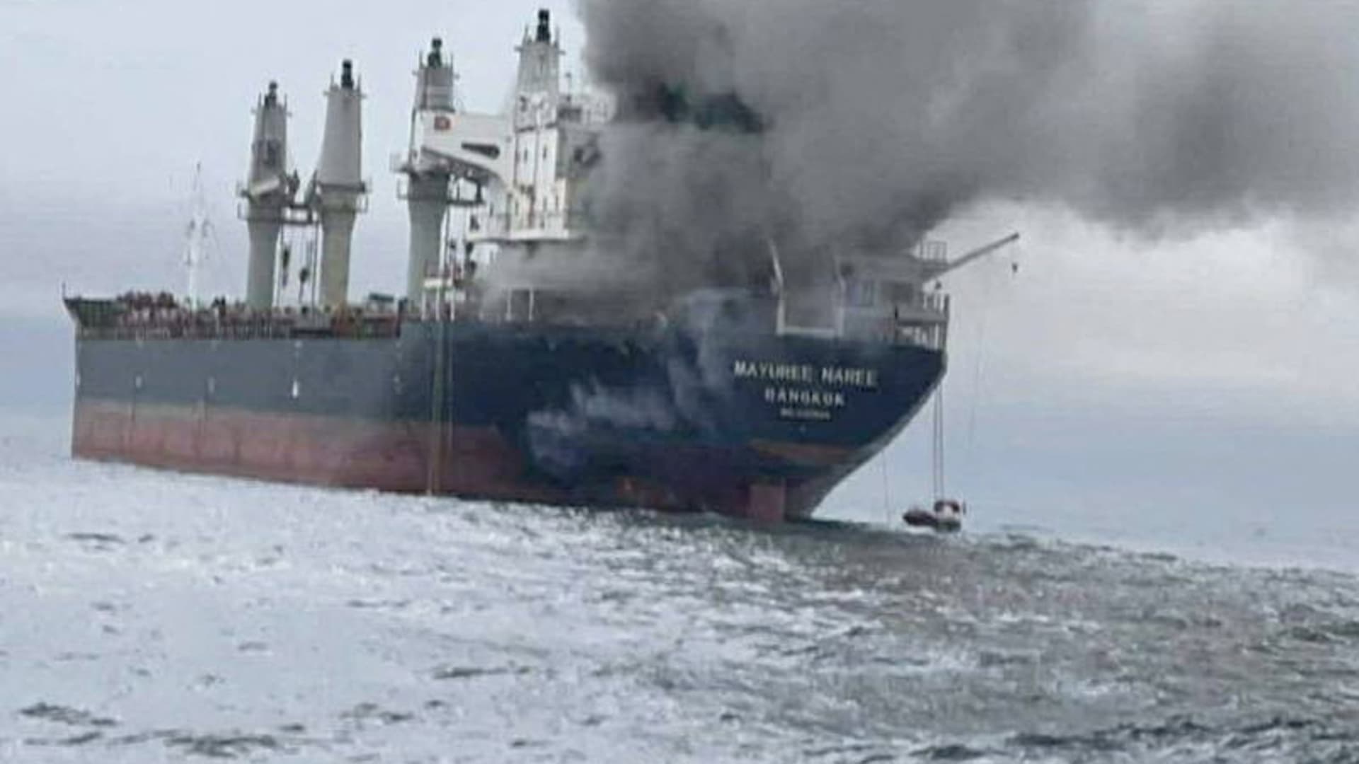 On March 11, 2026, the Thai-flagged cargo ship Mayuri Nary was covered in black smoke in the Strait of Hormuz.