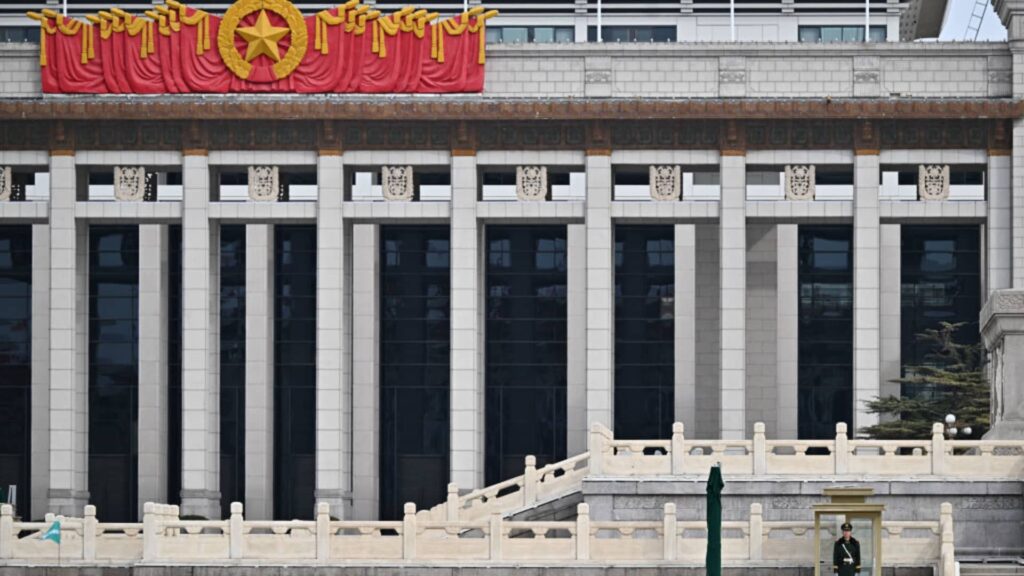 People’s Liberation Army (PLA) soldiers stand guard in front of the National Museum of China in Beijing, March 3, 2025, ahead of the country’s annual legislative session known as the “Two Sessions.”