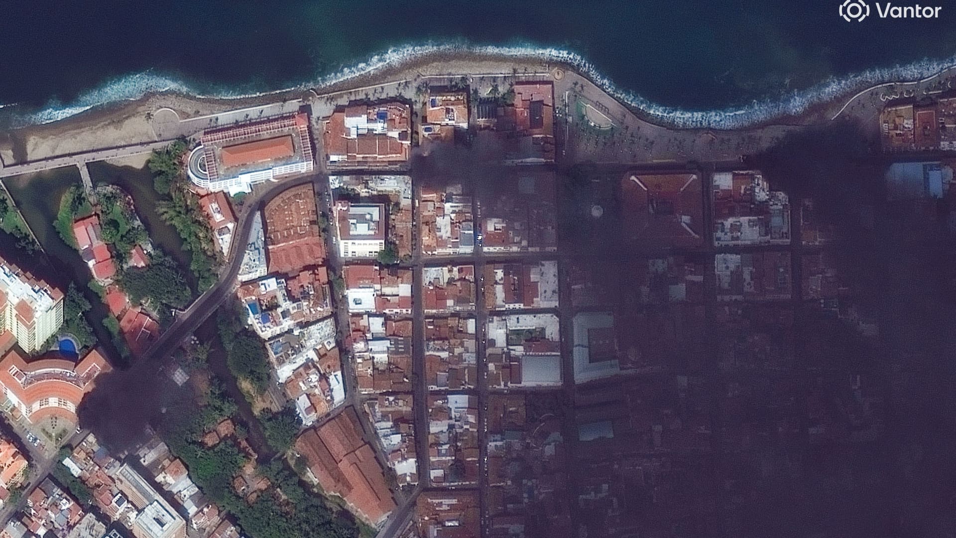 Satellite image shows a car on fire along a coastal road in Puerto Vallarta, Jalisco state, Mexico, on February 22, 2026, after drug lord Nemesio Oseguera, known as “El Mencho,” was killed in a military operation.