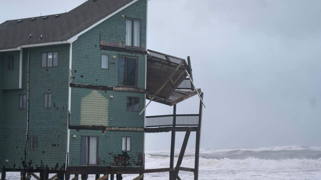The waves in the town of Buxton on Hatteras Island have been so strong that several beachfront homes have fallen into the water in recent weeks. On Sunday, a house lost its pilings and looked like it was about to collapse.