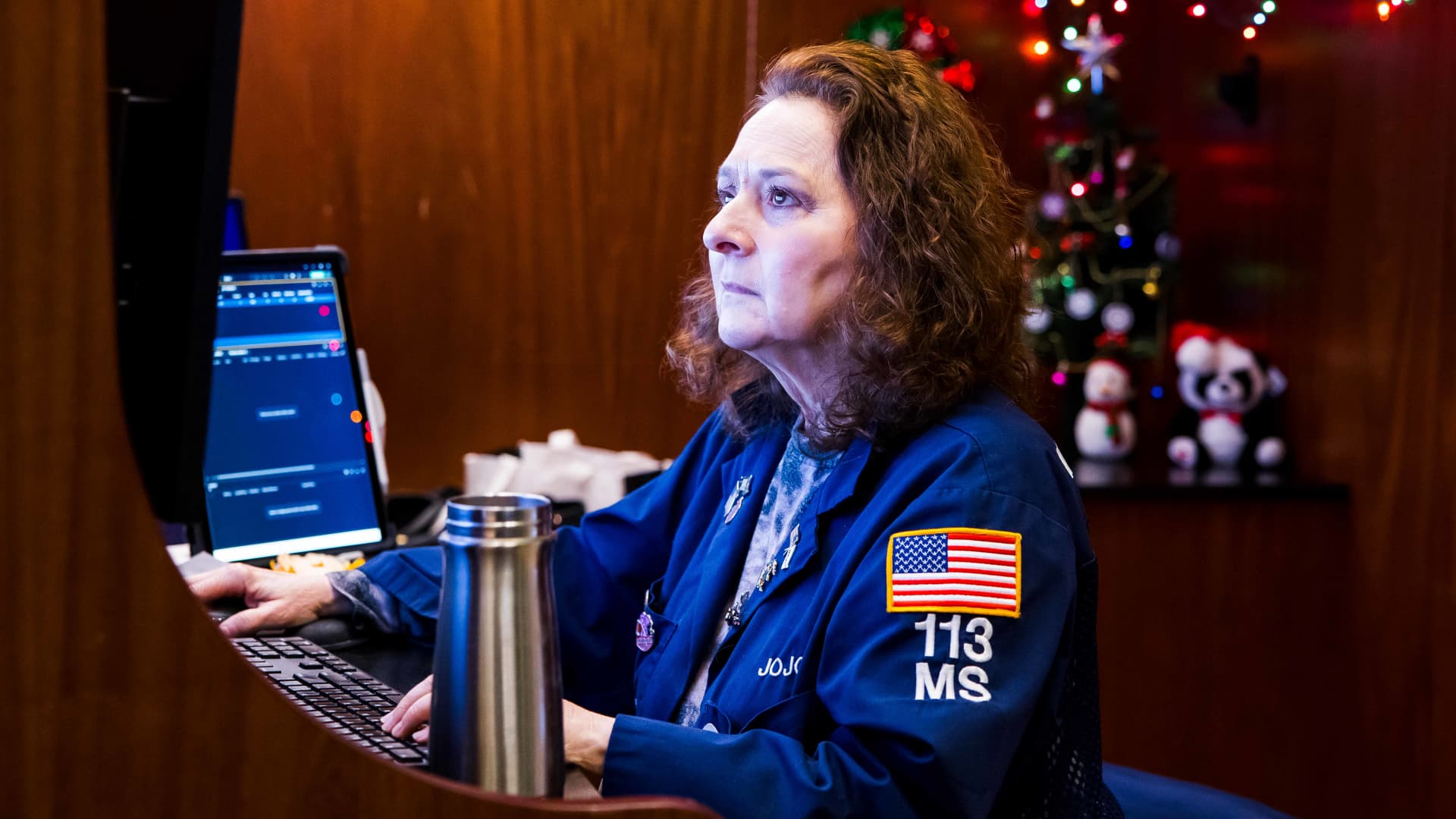 Traders work on the floor of the New York Stock Exchange.