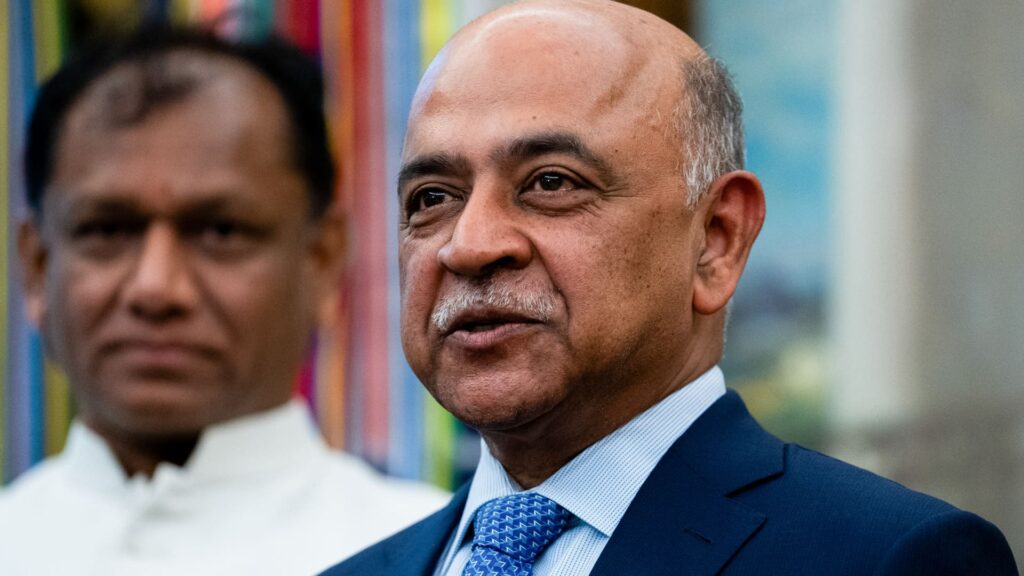 IBM CEO Arvind Krishna attends a Diwali celebration in the Oval Office of the White House on October 21, 2025 in Washington.