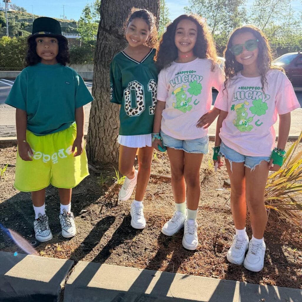 The photos that were part of it are Chloe’s Instagram post from March 17thshowed off her nieces in holiday-ready fashion in a pink St. Patrick’s-themed Care Bears shirt, denim shorts, and white sneakers.