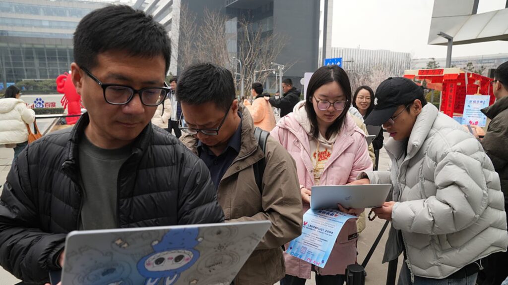 At a Baidu event in Beijing, China on Tuesday, March 17, 2026, attendees brought their laptops to install the OpenClaw AI agent.