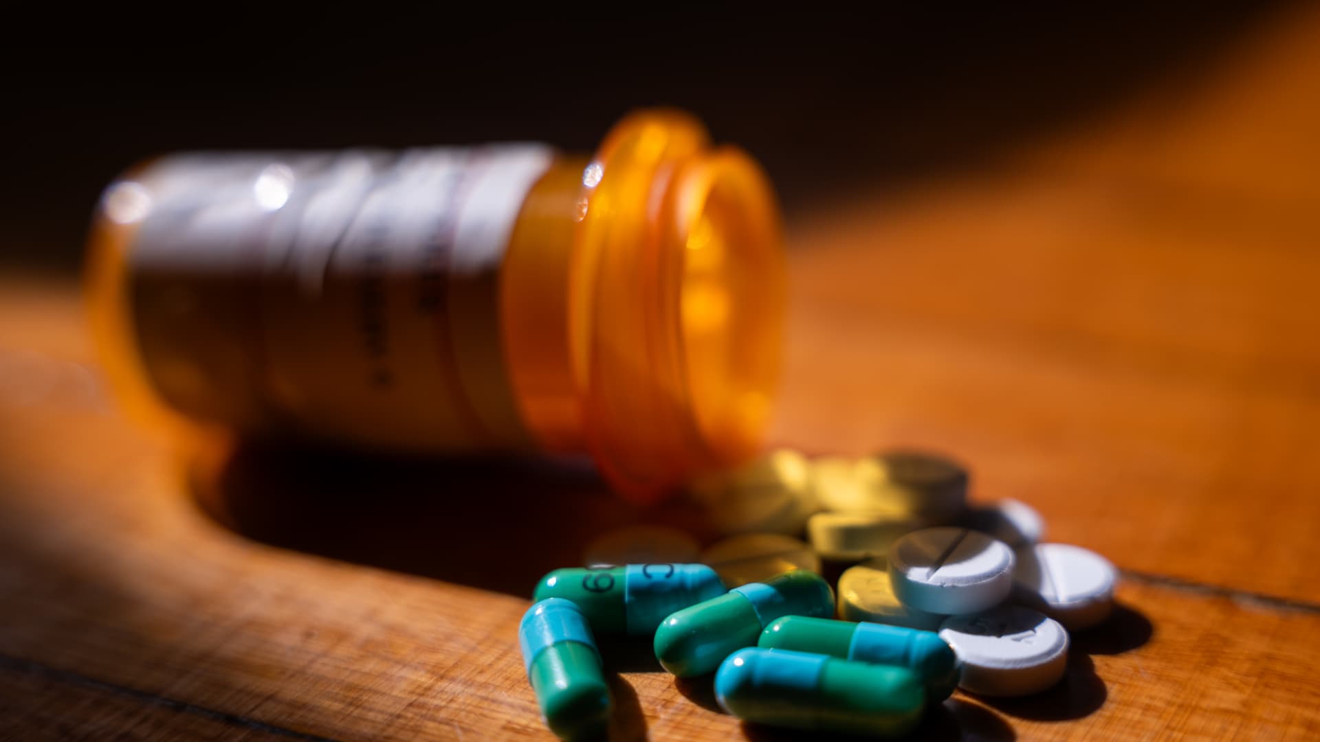 Illustrated photo showing prescription drugs next to pill bottles on July 23, 2024 in New York.