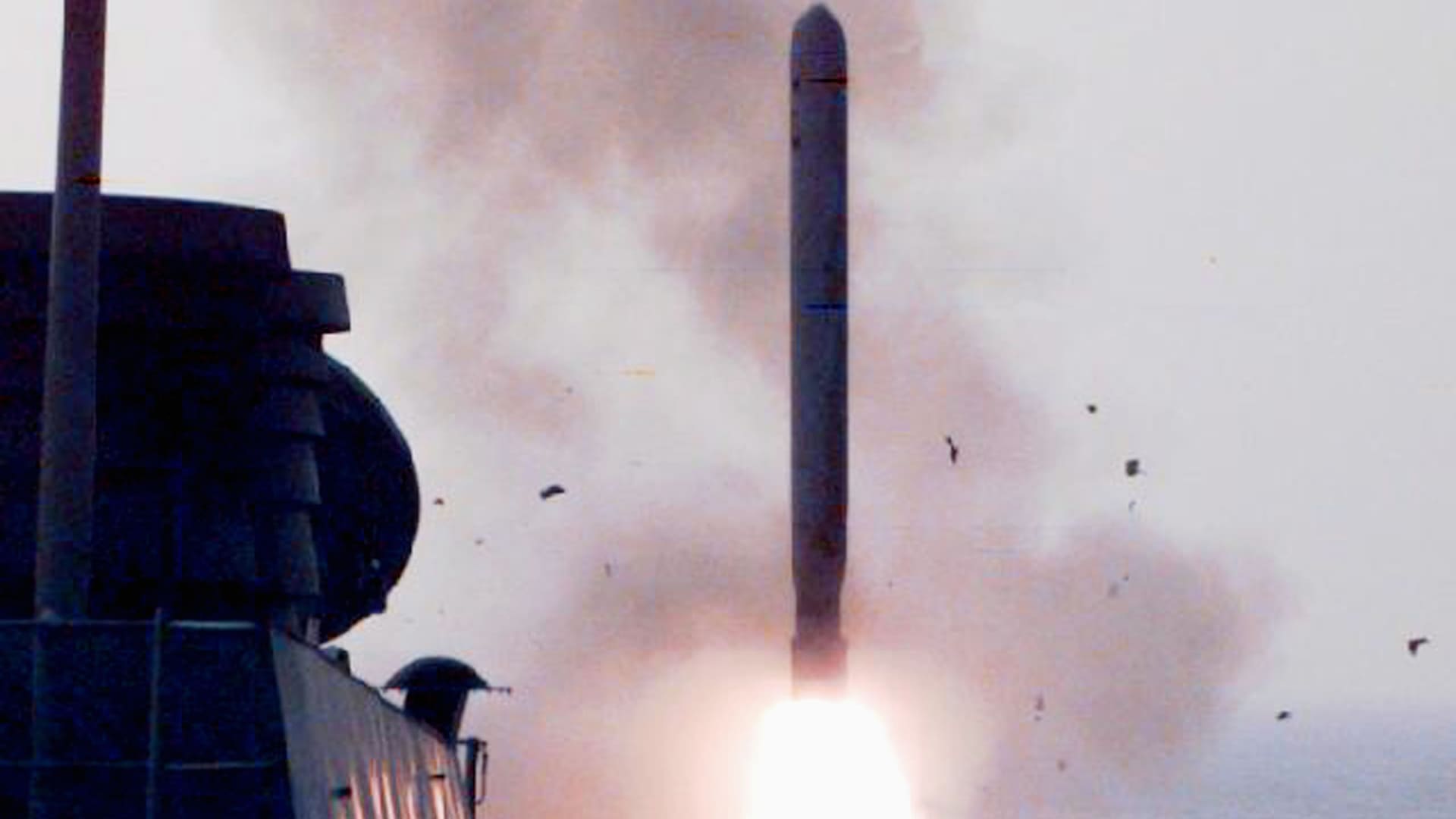 In this undated file photo, a U.S. warship fires a Tomahawk cruise missile.