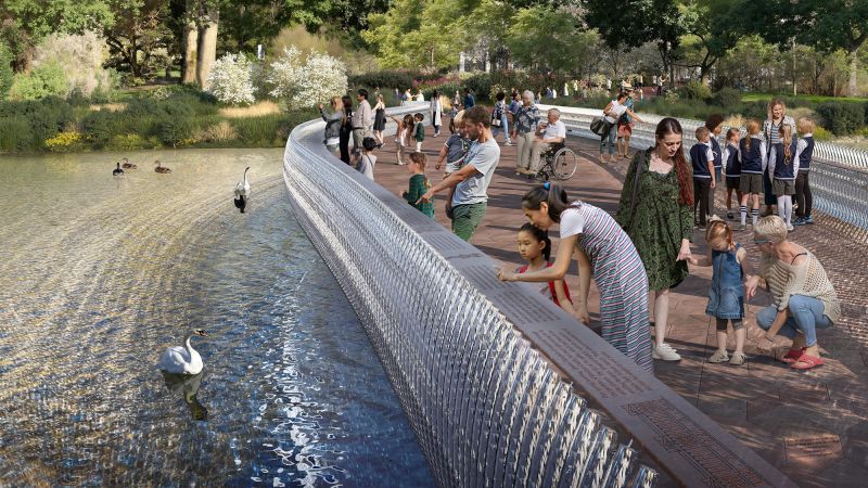 The planned memorial would reimagine London’s St James’s Park and include a translucent glass Unity bridge reminiscent of the tiara Elizabeth wore on her wedding day, as well as statues of Elizabeth and her husband Prince Philip.