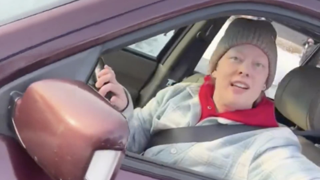 The new video begins with an ICE officer getting out of his car and walking up to Good’s SUV, which is blocking the road, as sirens blare in the background.