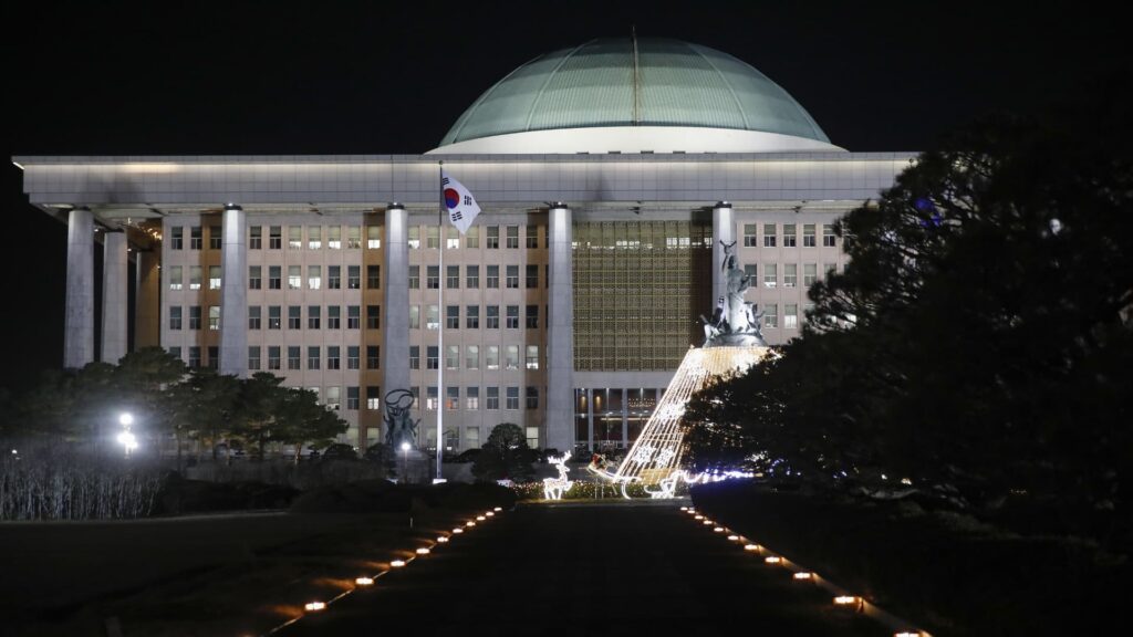 SEOUL, SOUTH KOREA – DECEMBER 14: The National Assembly building is seen on the night after the impeachment of South Korean President Yoon Seok-yeol on December 14, 2024 in Seoul, South Korea. (Photo provided by Woohae Cho/Getty Images)