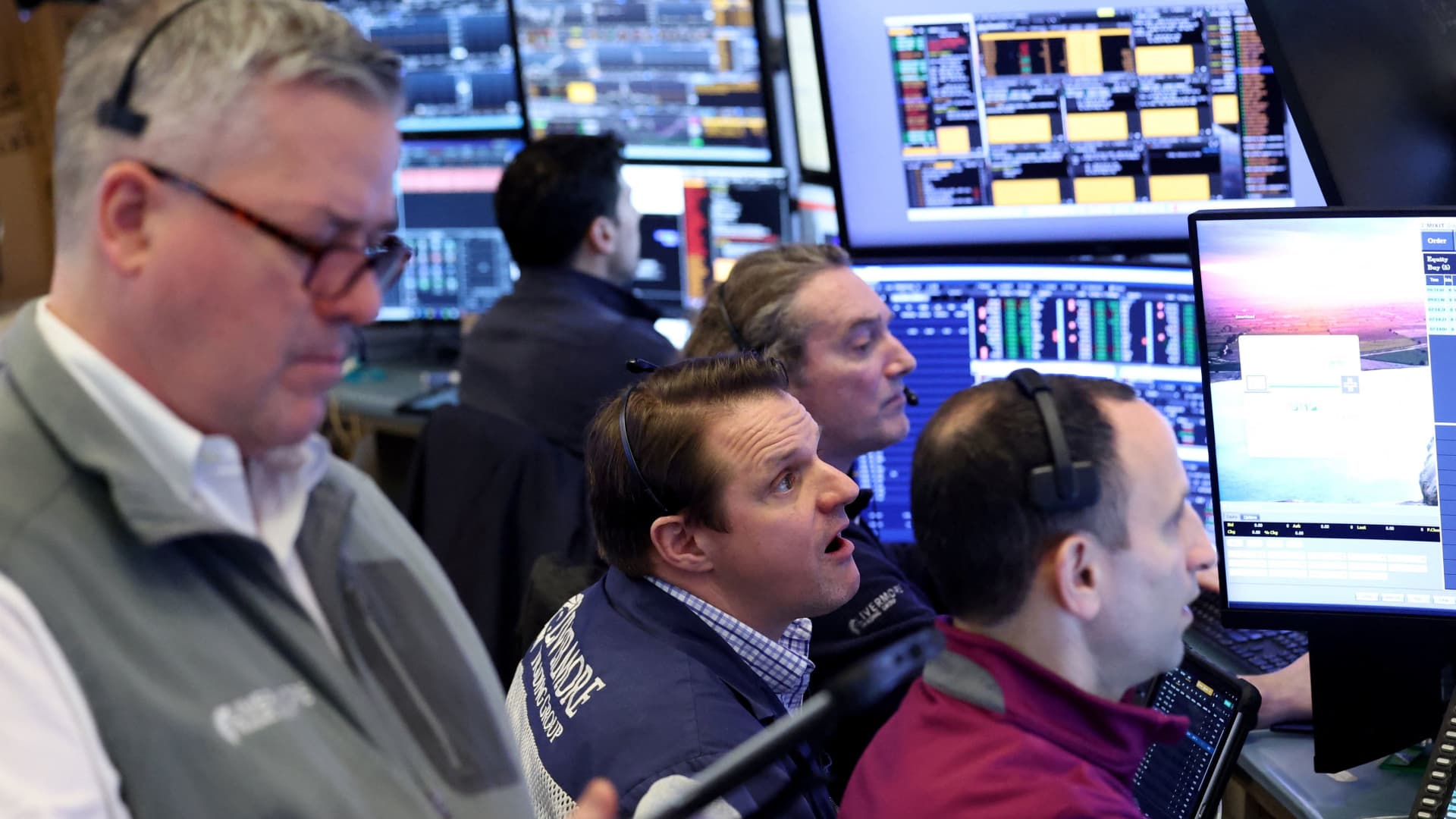 Traders work on the floor of the New York Stock Exchange (NYSE) on February 13, 2026 in New York City, USA.