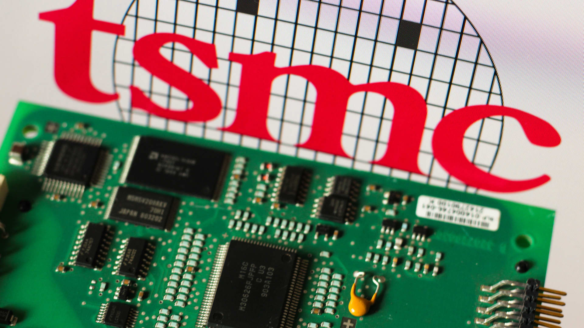 The Taiwan Semiconductor Manufacturing Company logo is visible in the background next to the printed circuit board.