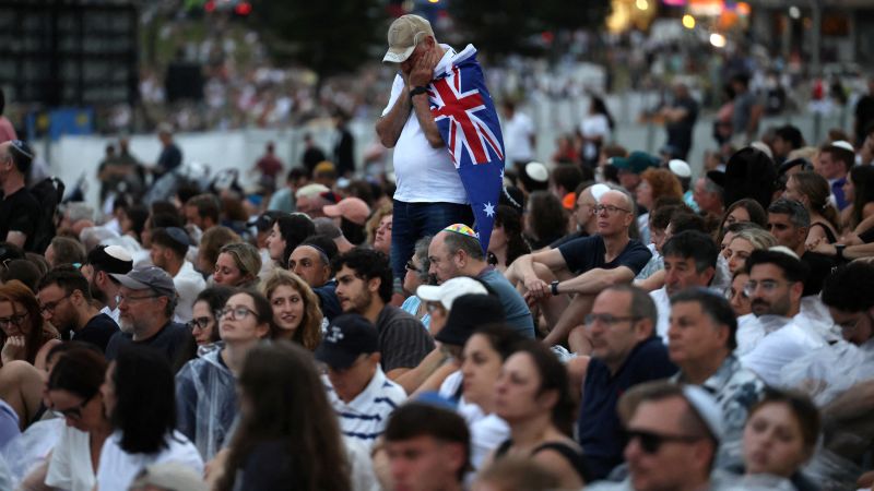 Thousands gather on Bondi Beach to mourn victims of anti-Semitic attack