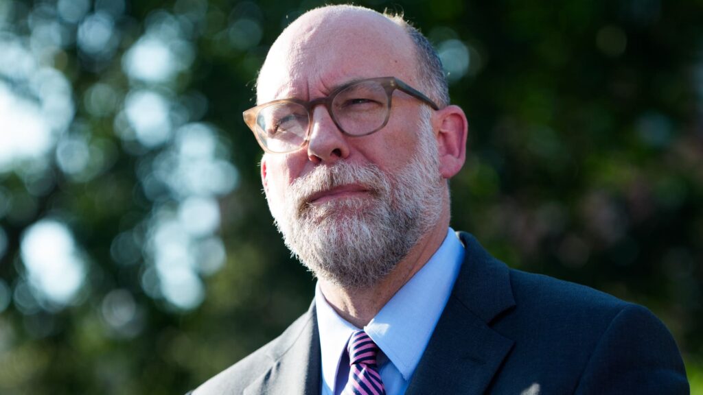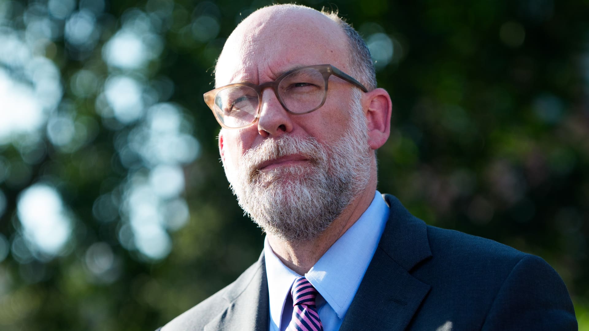 Office of Management and Budget (OMB) Director Russell Vought speaks to members of the media in front of the White House on Thursday, July 24, 2025 in Washington, DC, USA.